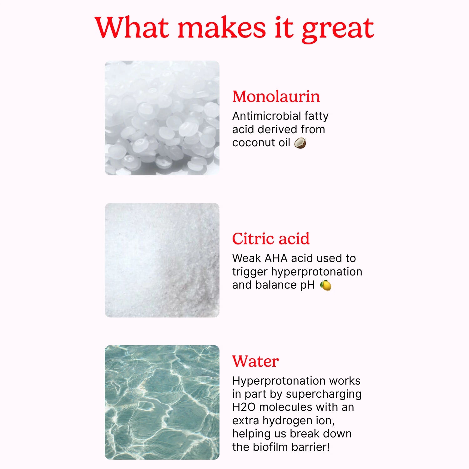 Around 90% of bacteria live within a biofilm, a protective 'bio-goop' they create that works like a shield. It makes them up to 5000x more resistant to soaps, antibacterials and the body's immune defenses, turning 'normal' bacteria into the kind that cause breakouts.